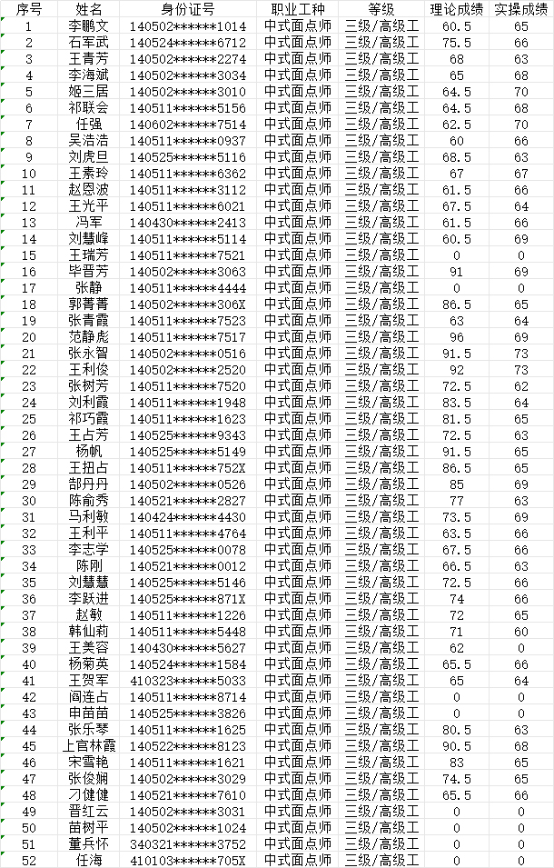 2024629日第4批中式面點師高級認定人員成績公示
